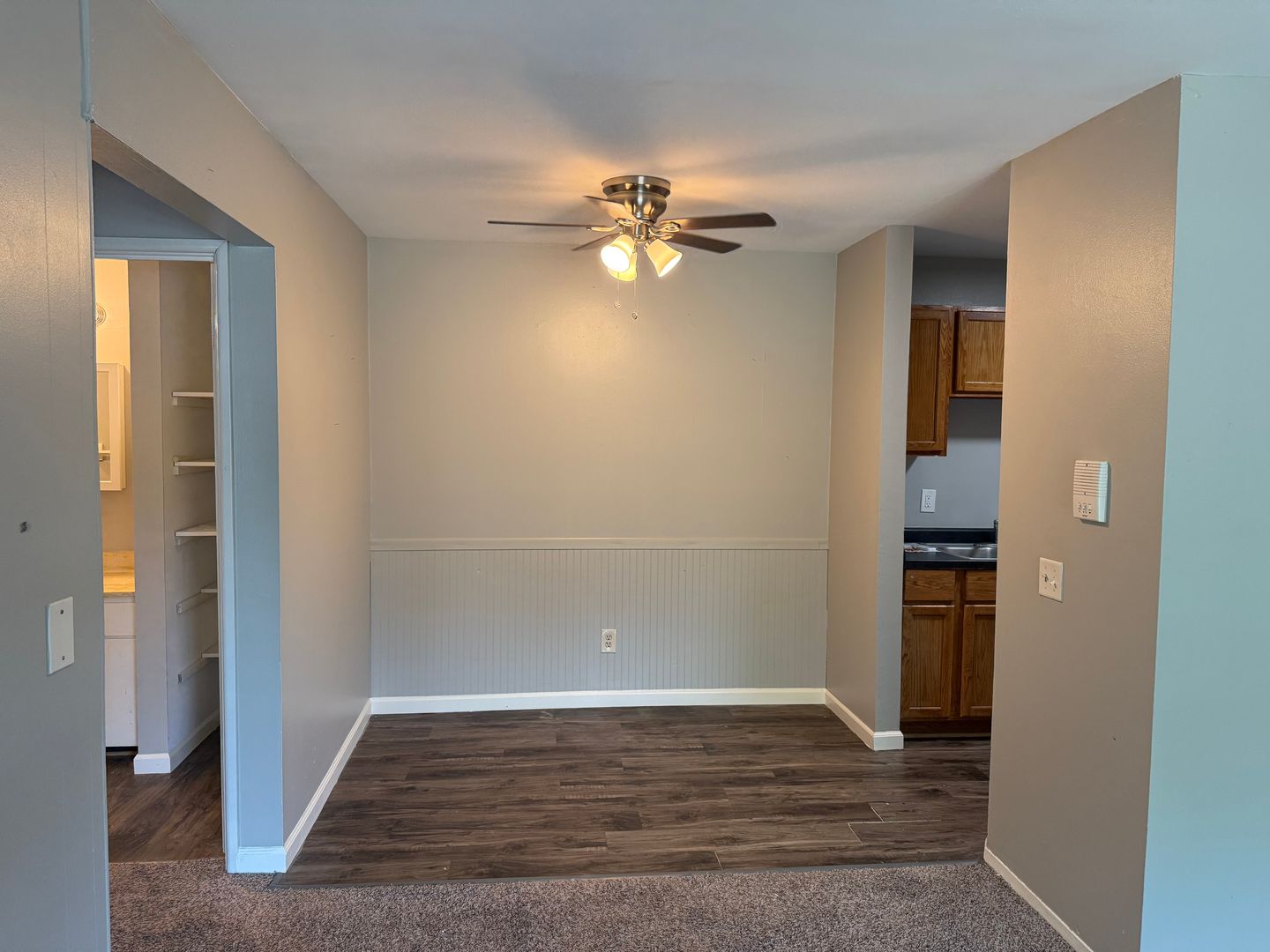 Kitchen finishes include abundant cabinets and a full set of appliances including refrigerator, dishwasher and oven. Separate dining area includes a ceiling fan/light combination. Large living room has access to a private exterior balcony.