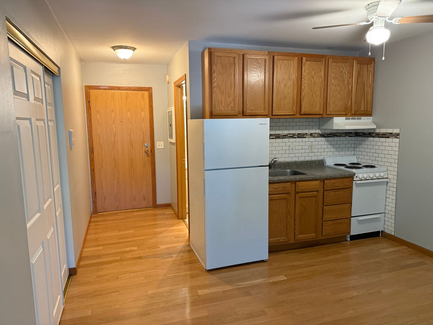 Charming, sunny and air-conditioned Studio with full bath. Updated kitchen and vinyl plank flooring throughout the unit. Kitchen includes wood-finished 30-inch cabinets, refrigerator, and 20 inch electric stove. Ample closet space.