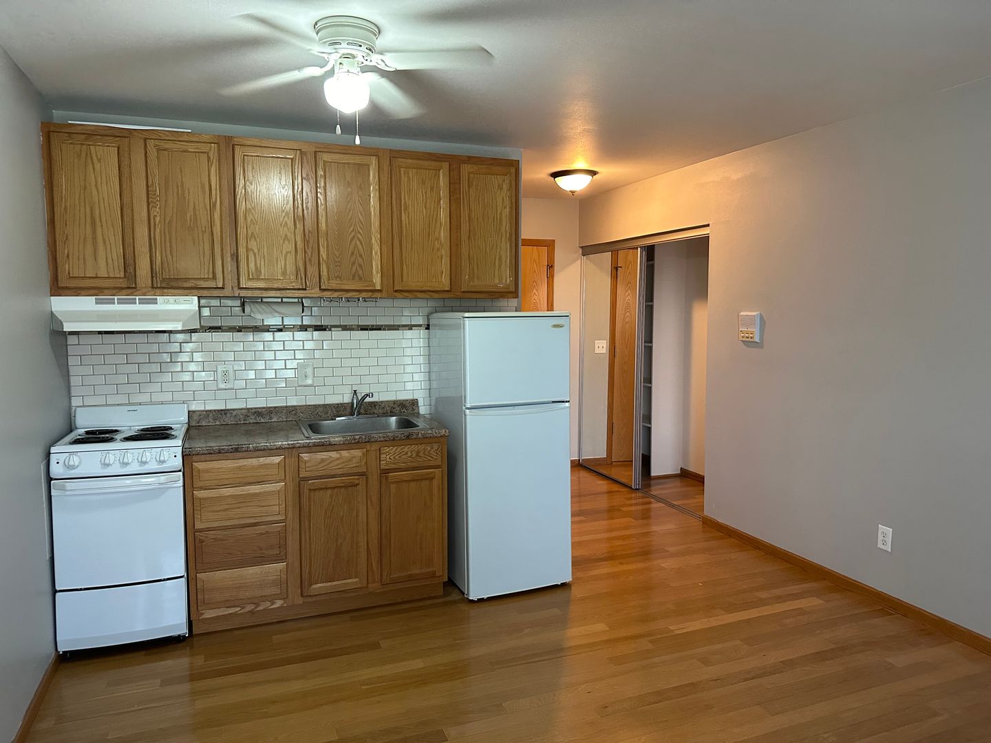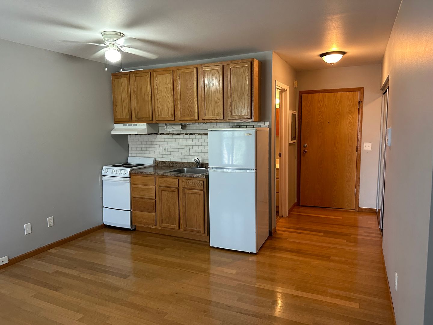 Updated kitchen and vinyl plank flooring throughout the unit. Kitchen includes wood-finished 30-inch cabinets, refrigerator, and 20 inch electric stove. Ample closet space.