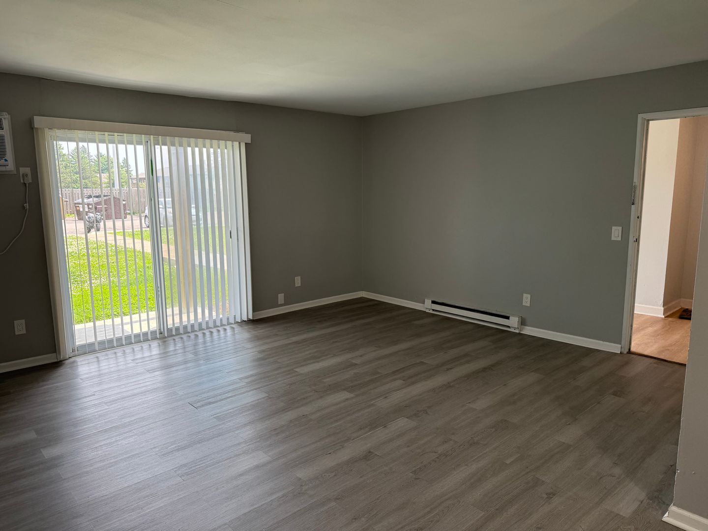 Each apartment has in-wall A/C and electric baseboard heat. Trash, hot water and sewer service is included in rent. Tenant pays electric and a $25 monthly water usage fee.